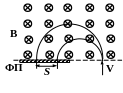 олем с разностью потенциалов U = 300 В и попадают в однородное магнитное поле, перпендикулярное направлению их движения. Индукция магнитного поля В = 8·10-2 Тл. Найти: а) на каком расстоянии S друг от друга ионы попадут на фотопластинку (см. рисунок), б) какой из ионов раньше достигнет фотопластинки, если в магнитное поле они влетают одновременно. Взаимодействием ионов пренебречь.