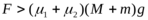 Условие совместного движения тел, очевидно, означает, что сила F имеет значение меньше искомого, так как с ростом этой силы растёт ускорение системы и должна увеличиваться сила