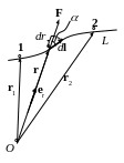 Работа силы на конечном участке траектории 1 – 2 может быть найдена интегрированием вдоль траектории L движения МТ: