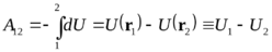 Для случая перемещения на конечное расстояние работа потенциальной силы определится через разность потенциальных энергий в начальном и конечном положениях МТ: