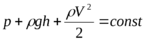 Здесь р – давление в движущейся жидкости или газе, – плотность жидкости (газа), h – высота данного сечения площади S относительно произвольно выбранного уровня, V – скорость частиц жидкости в этом сечении. Уравнение Бернулли можно применять для реальной жидкости или газа*), если выполнено условие: