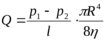 При протекании по трубе вязкой жидкости или газа в условиях ламинарности течения (Re < 1000) переносимый в единицу времени через поперечное сечение трубы объём жидкости Q (поток) определяется формулой Пуазейля: