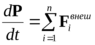 Исходя из законов Ньютона, можно доказать, что производная по времени импульса такой системы равна сумме внешних сил, действующих на систему: