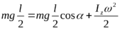 Здесь учтено, что столб – твёрдое тело, совершающее при падении чисто вращательное движение относительно оси, проходящей через точку его опоры перпендикулярно плоскости рисунка (ось Z). Принято (нормировка потенциальной энергии), что нулевое значение потенциальной энергии гравитационного взаимодействия система имеет, когда центр масс столба оказывается на поверхности земли (столб упал).