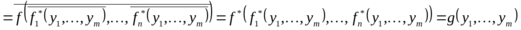 Из примеров видно, что переменные принадлежат множеству , поэтому нам опять достаточно доказать, что если и , то и . Можно считать, что у всех функций одинаковый набор переменных, если это не так, то недостающие переменные можно добавить как несущественные. Пусть этот набор - . Пусть . Тогда: