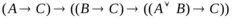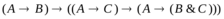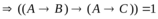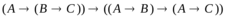 По I.2 (вторая аксиома первой группы), имеем , где выступает в роли , - в роли , еще раз в роли . Эта формула имеет вид , где , а . По I.1 имеем (при ), т.е. как аксиому. Значит, можно вывести , а именно, , или , где и . Дальше, если положить , будем, по I.1, иметь , то бишь . Следовательно, имея и , выводимо , оно же .