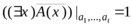 3. Дальше, если - формула, а и - множества свободных и связанных переменных ее, , то навешиванием квантора общности получаем формулу (обозначим ), , . Отсюда видно, что связанные переменные возникают вследствие навешивания кванторов. Пусть . Рассмотрим все наборы , где , , фиксированы, а пробегает все множество . Если для любого , то полагаем . В противном случае, если существует такое, что , то . На формулу можно навесить квантор существования аналогичным образом. Строим формулу (обозначим ) с и , равную 1 на наборе если существует такое , что , и 0, если такого нет.