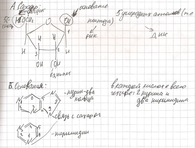 Азотистые основания = аденин, гуанин, цитозин, тимин(Днк) , урацил(рнк). 2 водородные связи(комплементарность) образуют А-У,Т и Г-Ц.