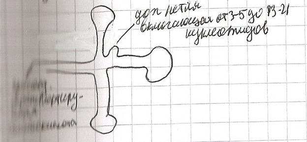 Остальные три ветви представляют собой комплементарно спаренные последовательности нуклеотидов, которые заканчиваются неспаренными участками, образующими петли.