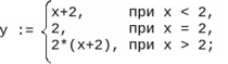 Составим теперь программу, реализующую условный оператор присваивания. Пусть целочисленная переменная y принимает значение в зависимости от вводимой целочисленной переменной x в соответствии с правилом: