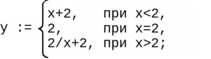 Составим теперь программу, реализующую условный оператор присваивания. Пусть переменная y принимает значение в зависимости от вводимой переменной x в соответствии с правилом: