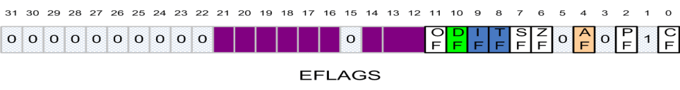 DF - флаг направления. Управляет направлением обработки строк данных, поведением цепочных инструкций (MOVS, CMPS, SCAS, LODS, STOS):