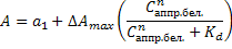 Далее проводят аппроксимацию полученной зависимости таким образом, чтобы при бесконечной нормированной концентрации белка насыщение стремилось к 1, а начальное значение было бы равно 0.