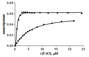Итак, суть метода заключается в том, что строится зависимость анизотропии флуоресценции от нормированной концентрации белка (по определенной концентрации белка).