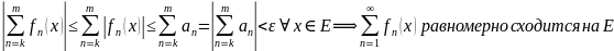 Теорема (признак Вейерштрасса равномерной сходимости функциональных рядов):