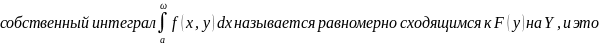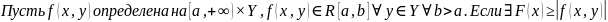 Теорема (признак Вейерштрасса равномерной сходимости несобственных интегралов с параметром):