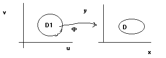 была однозначной, и чтобы было легко переходить от одной области к другой (обратимый переход). Аналогично для двойного интеграла при отображении Ф двумерной области D1 в двумерную D: