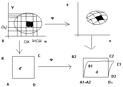 При замене переменных в двойном интеграле фактически происходит некоторое отображение Ф одной двумерной области интегрирования D1 в другую D, также двумерную.