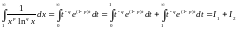 Интеграл I2 является несобственным интегралом первого рода. Подобрать функцию, эквивалентную подынтегральной функции, такую, чтобы она не содержала показательной функции, не удается. Поэтому использовать признак сравнения 2, как в предыдущих примерах, нельзя . Применим первый признак сравнения, для чего используем следующий известный факт: