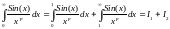Интеграл I2 сходится про признаку Дирихле-Абеля при p>0 т.к. первообразная sin(x) ограничена, а функция 1/xp монотонно стремится к нулю при x стремящемся к бесконечности.