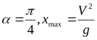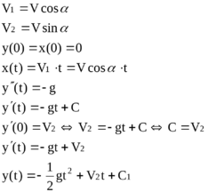 Выведем закон движения тела, брошенного с начальной скоростью V под углом α к горизонту.
