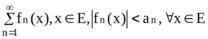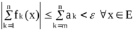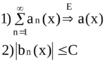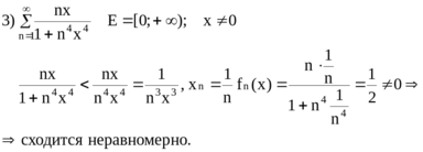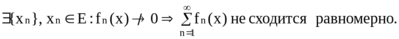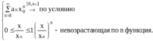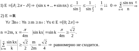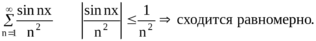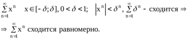 | Признак Абеля Если: bn(x) – монотонная по n последовательность при фиксированном x. | Признак Дирихле Если: по n монотонно, по равномерно |