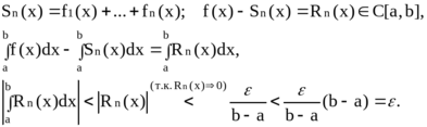 fn’(t) равномерно сходится на O(a). На основании теоремы об интегрировании функционального ряда этот ряд можно проинтегрировать почленно.