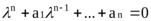 – собственные значения характеристического многочлена матрицы A (собственные числа):