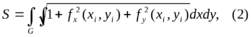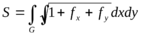 определена в замкнутой ограниченной области G, в которой она имеет непрерывные частные производные первого порядка, тогда фигура задаваемая данной функцией является квадрируемой, и ее площадь вычисляется по следующей формуле: