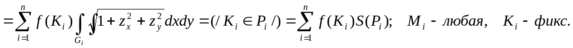 Рассмотрим квадрируемую поверхность P. Рассмотрим разбиение этой поверхности P на квадрируемые части. Пусть на P задана непрерывная функция