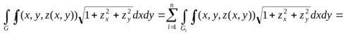 Суммируя по всем элементарным сегментам разбиения, получаем следующую формулу для вычисления площади поверхности D.