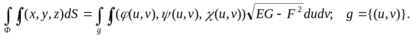 В том случае, когда поверхность задана параметрически, поверхностный интеграл вычисляется по формуле