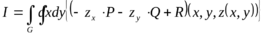 имеет в области непрерывные частные производные первого порядка. Эти требования необходимы для того, чтобы поверхность была гладкой. Пусть на поверхности P задана непрерывная функция f(M).Тогда поверхностный интеграл от функции f(x,y,z)вычисляются следующим образом:
