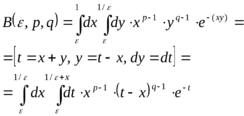 Согласно теореме 2.10 во втором интеграле мы можем поменять местами интегралы: