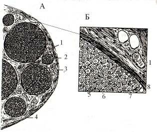 Рис 1.2 . Нерв (поперечный срез). А - общий вид,