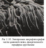 Хрусталик состоит из хрусталиковых волокон, спереди от которых располагается однослойный эпителий хрусталика. Снаружи хрусталик окружен капсулой хрусталика, представляющей собой утолщенную базальную мембрану.