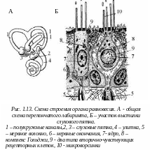 Изучите схему строения органа слуха и равновесия, продумайте топографию и функцию рецепторных клеток.