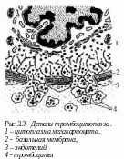 Среди кроветворных элементов красного костного мозга встречаются гигантские полиплоидные клетки, называемые мегакариоцитами. Эти клетки располагаются в тесном контакте со стенкой венозных синусов, тем самым обеспечивается поступление кровяных пластинок непосредственно в кровяное русло. Тромбоциты - это участки ц