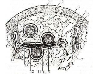 Рис. 3. 9. Схема строения и кровоснабжения селезенки.