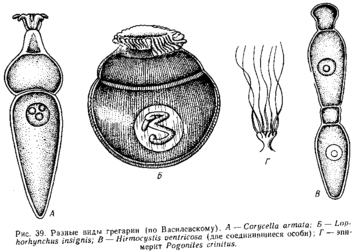 Очень интересны некоторые нематоды, паразитирующие в насекомых, особенно Sphaerutaria bombi из шмелей. Оплодотворенные самки этой нематоды проникают внутрь зимующей самки шмелей. После этого влагалище и матка Sphaerularia постепенно выпячиваются через половое отверстие из тела самки, переполняются развивающимися яйцами и чрезвычайно разрастаются. Вывернувшийся половой аппарат настолько увеличивается, что съежившаяся самка кажется на нем лишь едва заметным придатком. Из яиц самки выходят личинки, которые покидают шмеля и уже на воле в почве развиваются в половозрелых копулирующих нематод.