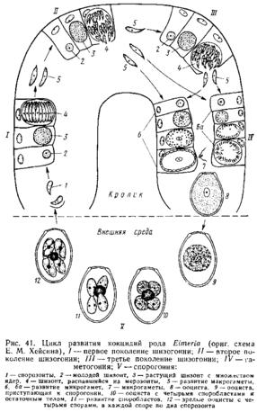 Кокцидии – внутриклеточные паразиты. Имеют вид округлых или овальных клеток. Паразитируют в эпителиальных и других клетках кишечника, печени, почек и некоторых других органов. У большинства кокцидий один хозяин, и спорогония происходит во внешней среде.