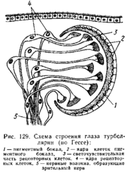 Осязание кожей, а у некоторых видов ещё и парными щупальцами переднего конца тела. Механические и химические раздражения воспринимаются длинными неподвижными ресничками – сенсиллами. Они рассеяны по телу турбеллярии и устроены почти так же, как книдоциль кишечнополостных, , однако в отличие от книдоциля сенсиллы связаны с нервными клетками, отростки которых подходят к мозговому ганглию. У некоторых турбеллярий (Acoela) имеются статоцисты со слуховым камешком из углекислой извести, примыкающие к задней части головного мозга. По краям головы могут располагаться сложные сенсорные ямки. Глаза имеются почти всегда. Если глаз одна пара, они лежат над мозгом, если несколько они могут окаймлять края всей передней половины тела. Глаз образован из пигментного бокала, образованного одной или несколькими пигментными клетками, и вдающейся в полость бокала светочувствительной части рецепторных клеток – от них отходят нервные волокна, которые соединяются в зрительный нерв и направляются к мозгу. Пигментный бокал обращён своей вогнутой стороной к поверхности тела. Глаза такого типа называются инвертированными (обращёнными) — свет сначала проходит через тела фоторецепторных клеток, а только потом попадает на их чувствительные части.