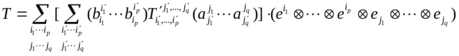 Теорема. При переходе от базиса к базису в координаты тензора типа изменяются по правилу: , где - матрица перехода от базиса к базису пространства , а .