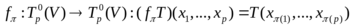 Пусть T – тензор типа , т.е. , и - группа подстановок множества . Для любой определим отображение . Ясно, что - тензор типа . Аналогично можно определить действие на .