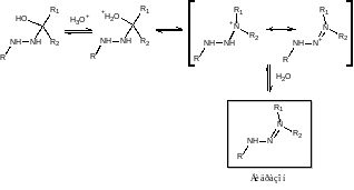 Таким образом, в результате катализируемой кислотами дегидратации формируется двойная связь, и затем, после отщепления протона образуется конечный гидразон. Стоит отметить, что pH реакции имеет большое значение [7].
