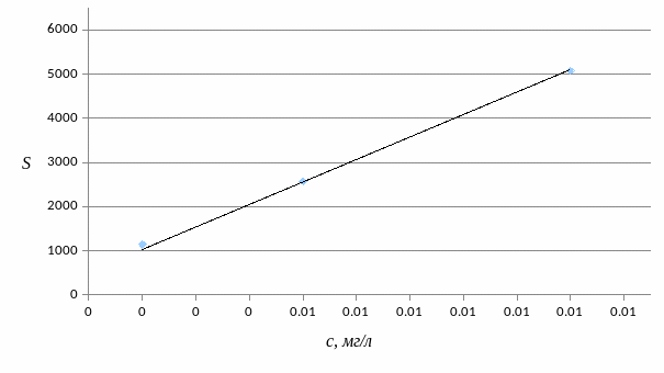 Разброс результатов относительно среднего невелик (относительное стандартное отклонение, sотн не превосходит 2%), что свидетельствует о хорошей воспроизводимости для данного уровня концентраций (2 мг/л).
