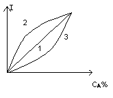 Если А>Н , то с ростом концентрации CA тангенс угла наклона кривой I=f(CA) уменьшается (рис. 2, кривая 2), если А<Н, то с ростом CA тангенс угла увеличивается (рис. 2 кривая 3). При А=Н график прямая (рис. 1, кривая 1) [3].