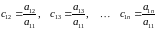Значения новых коэффициентов и правых частей системы 9 вычисляются по формулам: