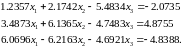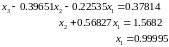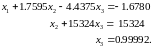 Решим систему 19 с помощью метода Гаусса, не обращая внимание на величины элементов матрицы. Все результаты расчетов условимся представлять в виде чисел с плавающей запятой с пятью значащими цифрами. Тогда после прямого хода получим систему треугольного вида: