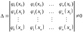 Очевидно, что для однозначной разрешимости задачи интерполирования в классической постановке необходимо и достаточно, чтобы система функций